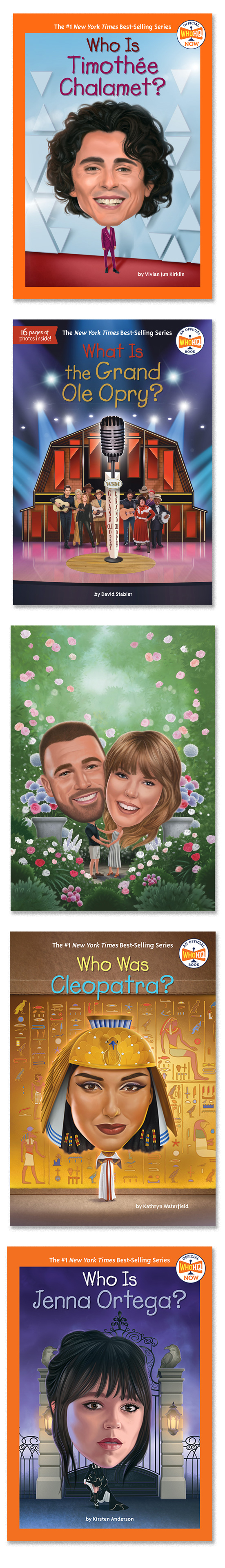 Illustrator Ralph Voltz is a key visual voice behind many titles in Penguin Random House’s popular Who Is / Who Was / What Is series, bringing modern energy and clarity to nonfiction for young readers. His cover artwork, seen on books such as Who Is Timothée Chalamet?, Who Was Cleopatra?, What Is the Grand Ole Opry?, Who Is Jenna Ortega?, and Who Are Taylor Swift and Travis Kelce? blends bold color, expressive portraiture, and carefully researched likenesses to make real people and cultural icons feel available and accessible. Voltz’s illustrations strike a balance between realism and stylization, helping each subject feel iconic, and his covers play a major role in signaling the series’ modern, engaging tone on shelves worldwide.